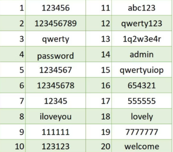 全球最“弱”密码排名表