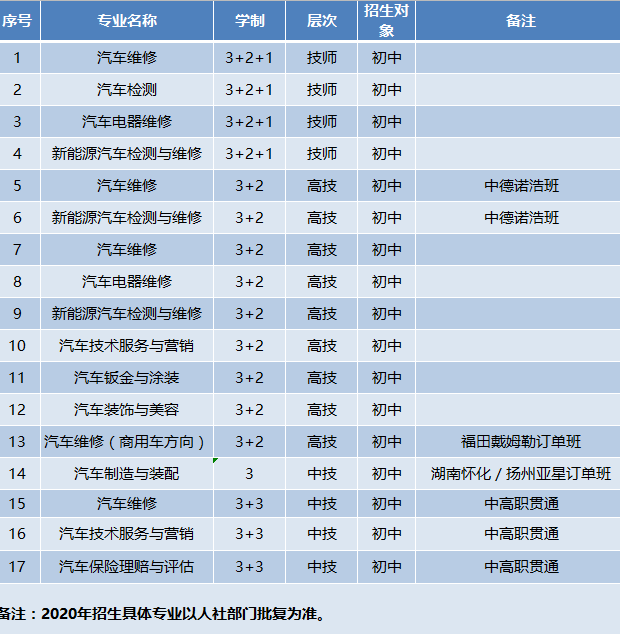 班级特色:除了完成基础学习任务以外,在专业课教学过程中穿插进行新能源汽车检测与维修方向专项技能训练,储备知识及技能以参加市、省、全国等相关技能比赛,就业前景较好。